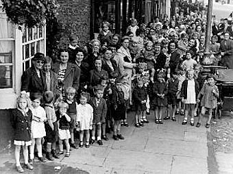 A large queue formed outside the Golden Fleece as the children waited for the bananas to be distributed.