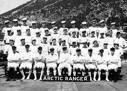 The crew of H.M.S. Arctic Ranger in Gibraltar, 1945 (picture courtesy of Alan Collenette, whose father, Arthur Collenette, served aboard H.M.S. Arctic Ranger).