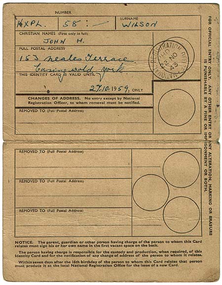 Inside, a section states how long the card was valid for – until 1959 in this case. This particular card belonged to a boy living in Easingwold; however it was the duty of the parent or guardian to look after the card and produce it if required.
