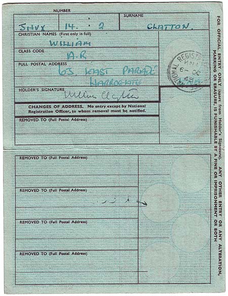 This is a typical identity card issued to civilians during (and after) the Second World War. It had to be carried at all times and was to be produced when requested by a police officer or a member of the armed services or Home Guard when on duty.