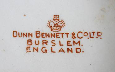 The underside of the mug identifies the manufacturer as Dunn Bennett & Co. Ltd of Burslem, England.